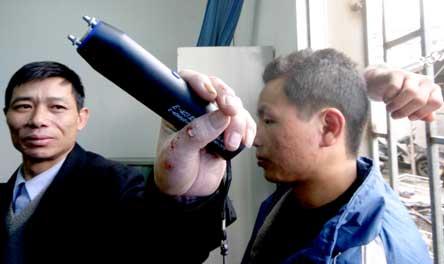 3被电警棍电击后对人体的伤害是由电流本身及转变为电能后的光和热对人的伤害,主要包括电伤和电击。前者主要指热效应引致的烧灼伤;后者指电流通过人体局部造成的伤害。具体是指造成心脏心室纤维颤动引起的心脏停跳及电流对延髓呼吸中枢造成麻痹,抑制引起的呼吸衰竭等。