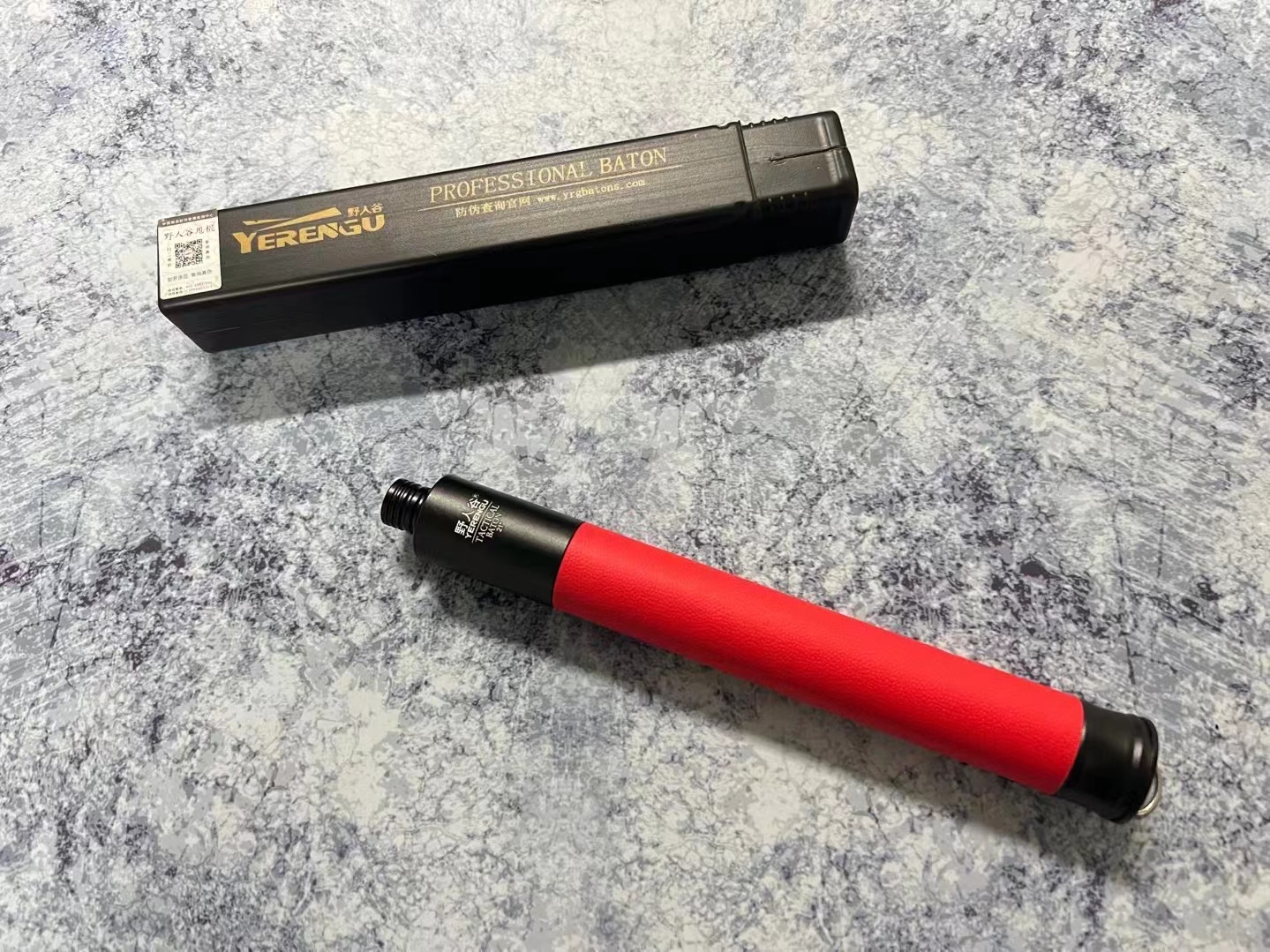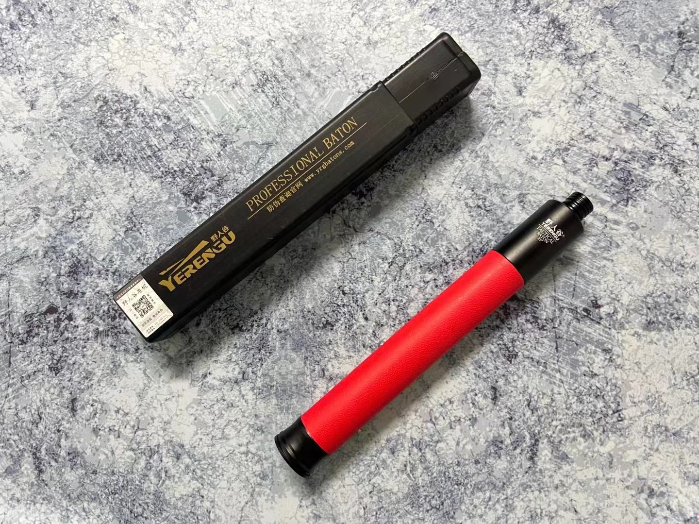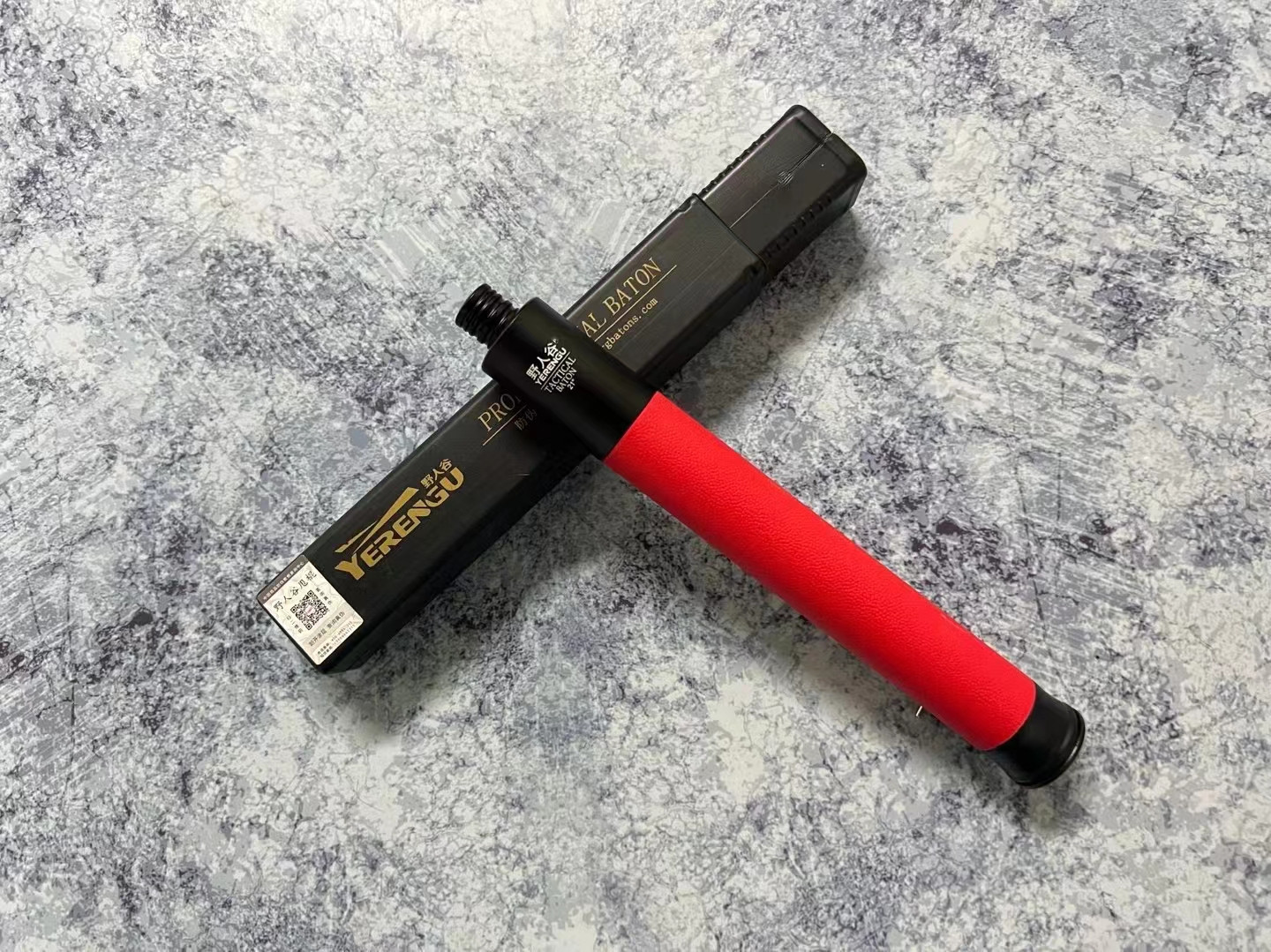 野人谷21寸教官红机械甩棍,尾部按压,一键收棍,防滑橡胶护手握把,防脱防抢,航空铝材,重量325克