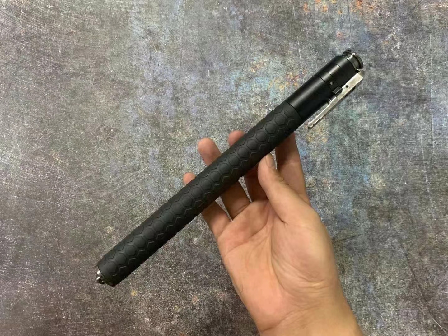 新款26寸弹簧三代甩棍,尾部自带破窗器,中间保险开关打开,一键伸起,豪华菱形皮手柄,重量735克,男士防身防护首选