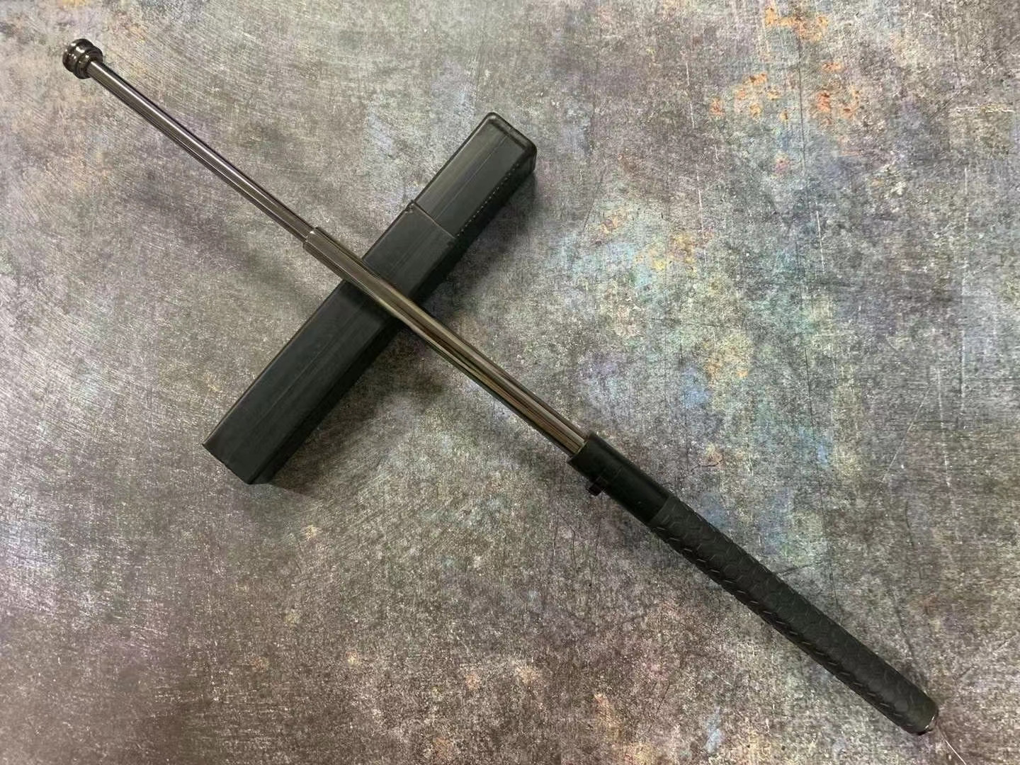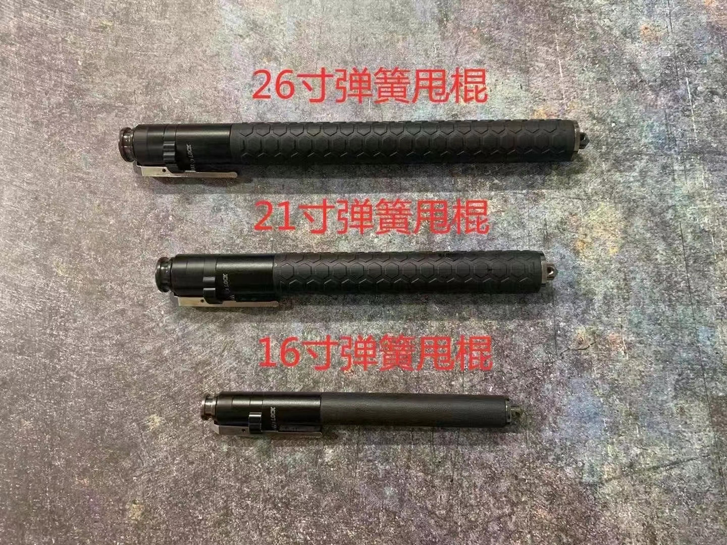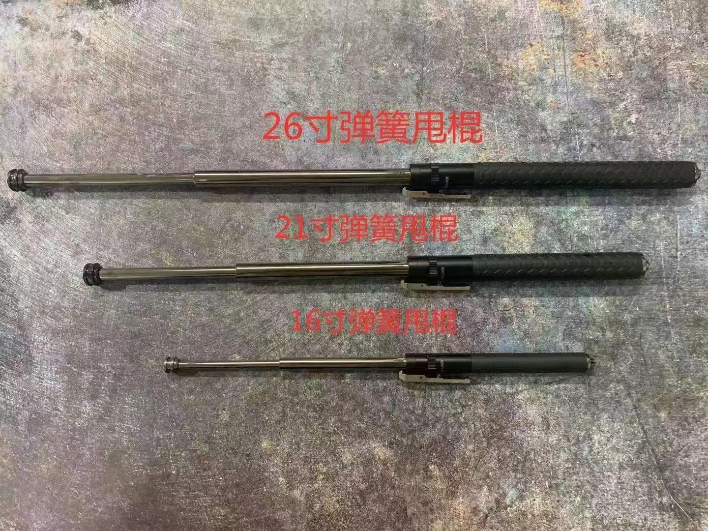 新款26寸弹簧三代甩棍,尾部自带破窗 豪华菱形皮手柄