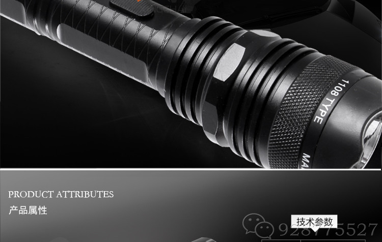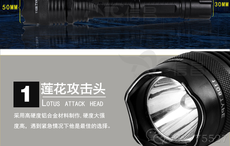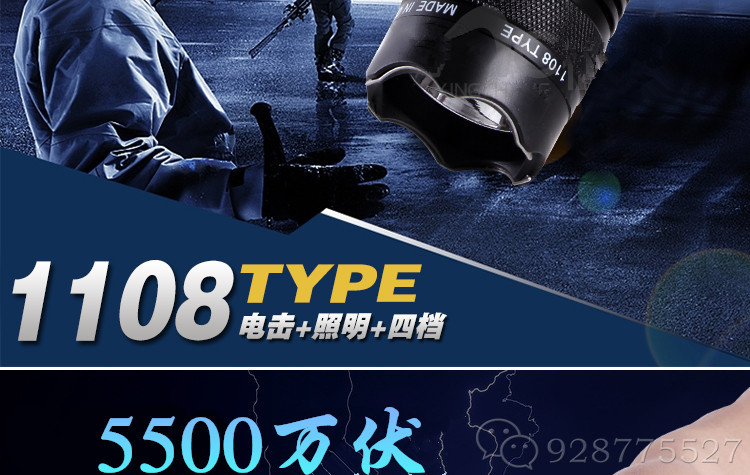 黑鹰1108型钛合金强光爆闪改进型强光电击器(现役强光LED灯)