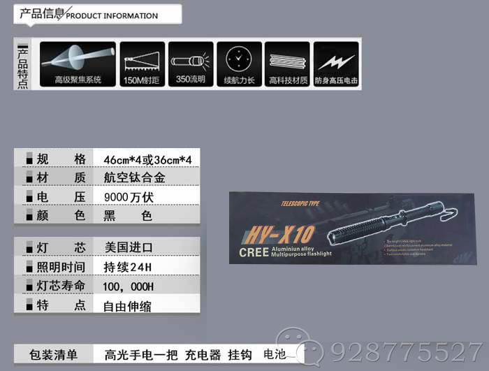 | 产品名称 : | 黑鹰x10伸缩防身电棍加长款 |