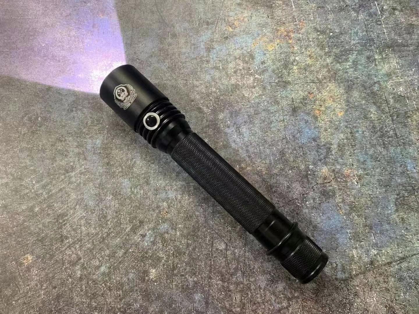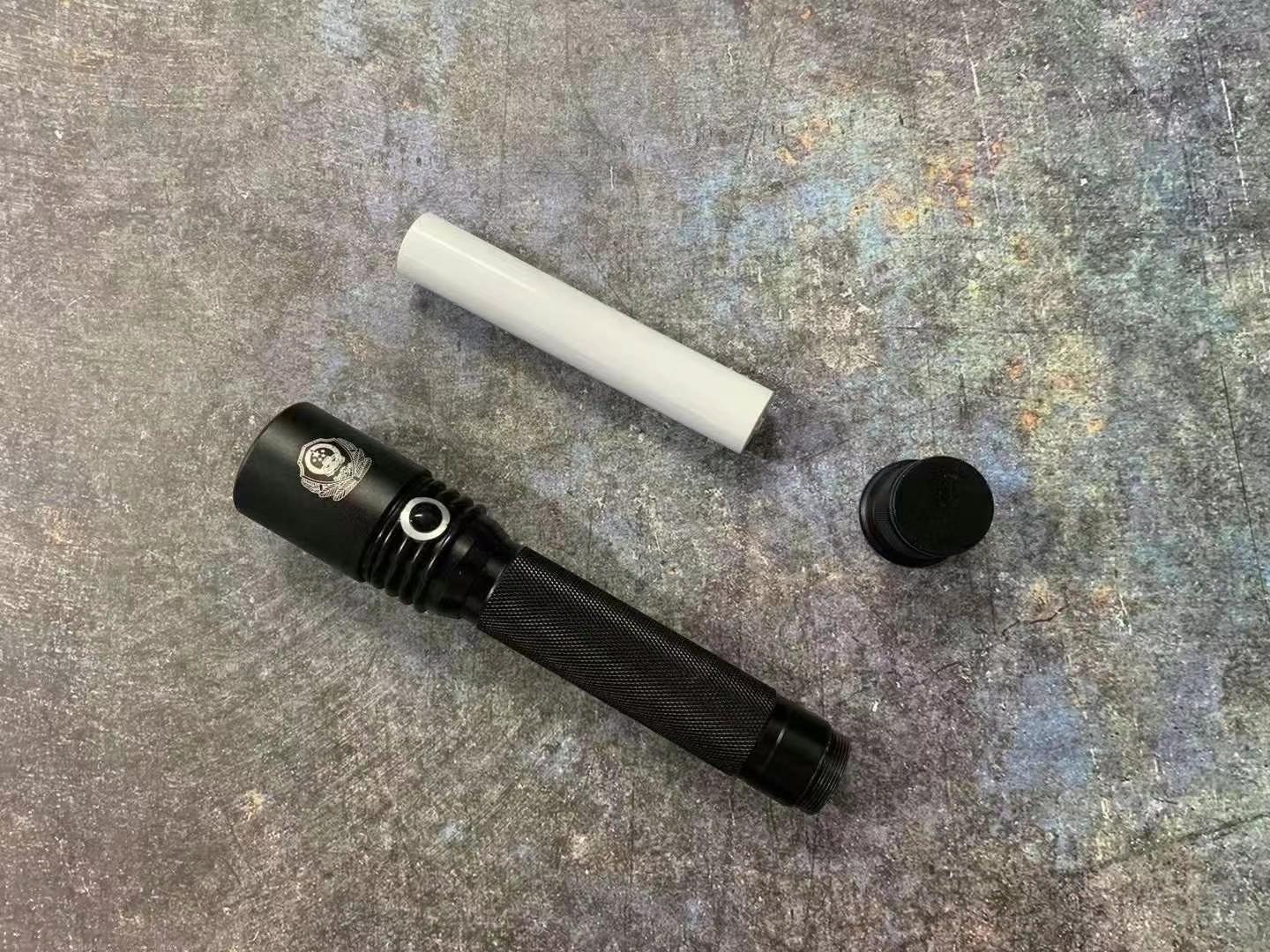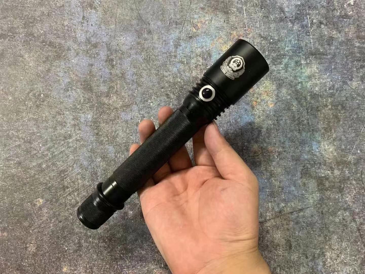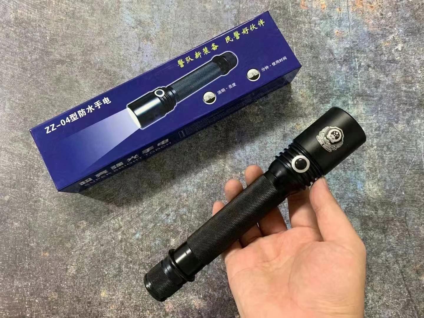 正品警用潜水手电筒型号A6 正品保证,灯泡采用T6灯珠,1000流明,是公安部正式配发的电筒,附带编码,照明距离500米以上,三种模式:强光,弱光,爆闪模式。续航12小时左右,采用进口锂电池,全身经过多层防水设计,可在极寒环境下使用,最高潜水150米。此款手电筒不带电击