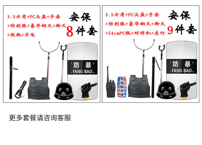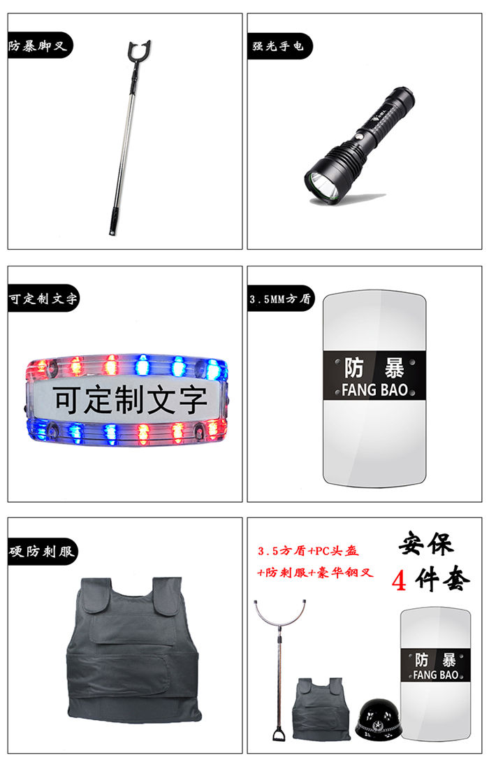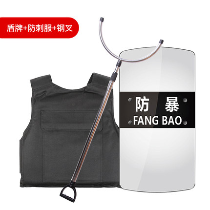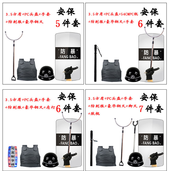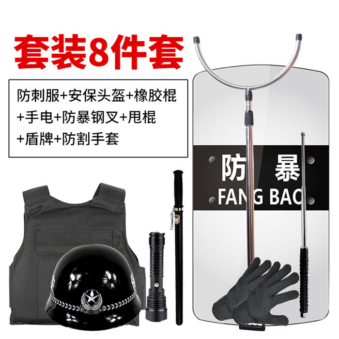 防割手套防爆臂式防暴盾牌校园保安用品器材钢叉头盔橡胶棍防刺服 8件套多种安防产品组合套装,适合学校,保安,个人,防暴乱,合法不违禁