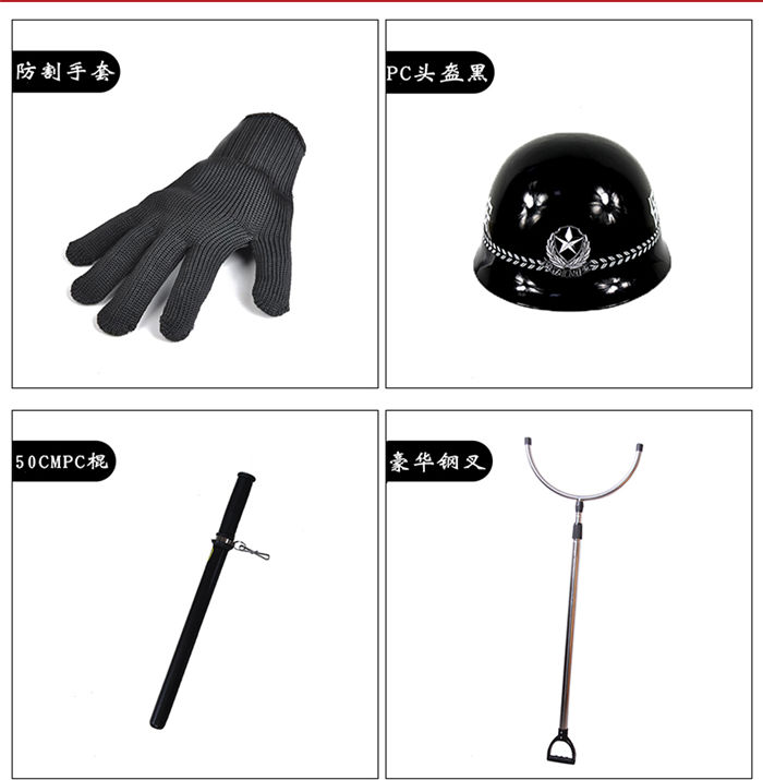 防割手套防爆臂式防暴盾牌校园保安用品器材钢叉头盔橡胶棍防刺服